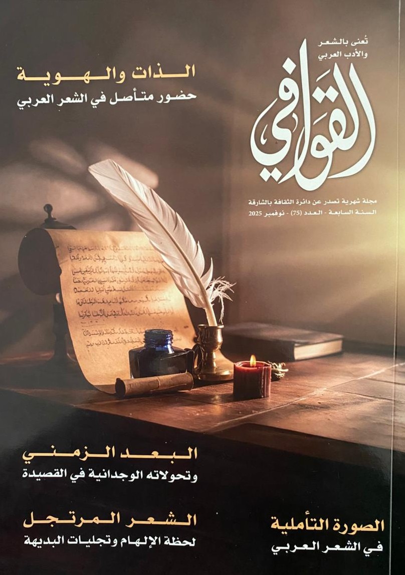 صدر عن "بيت الشعر" في دائرة الثقافة بالشارقة العدد 75 لشهر نوفمبر من مجلة "القوافي" الشهرية؛ المتخصّصة بالشعر الفصيح ونقده - في عامها السابع- التي تحتفي بالمواضيع ذات الصلة به بلاغةً ولغةً وتراثًا. كما تحتفي بالشعراء من مختلف العصور.