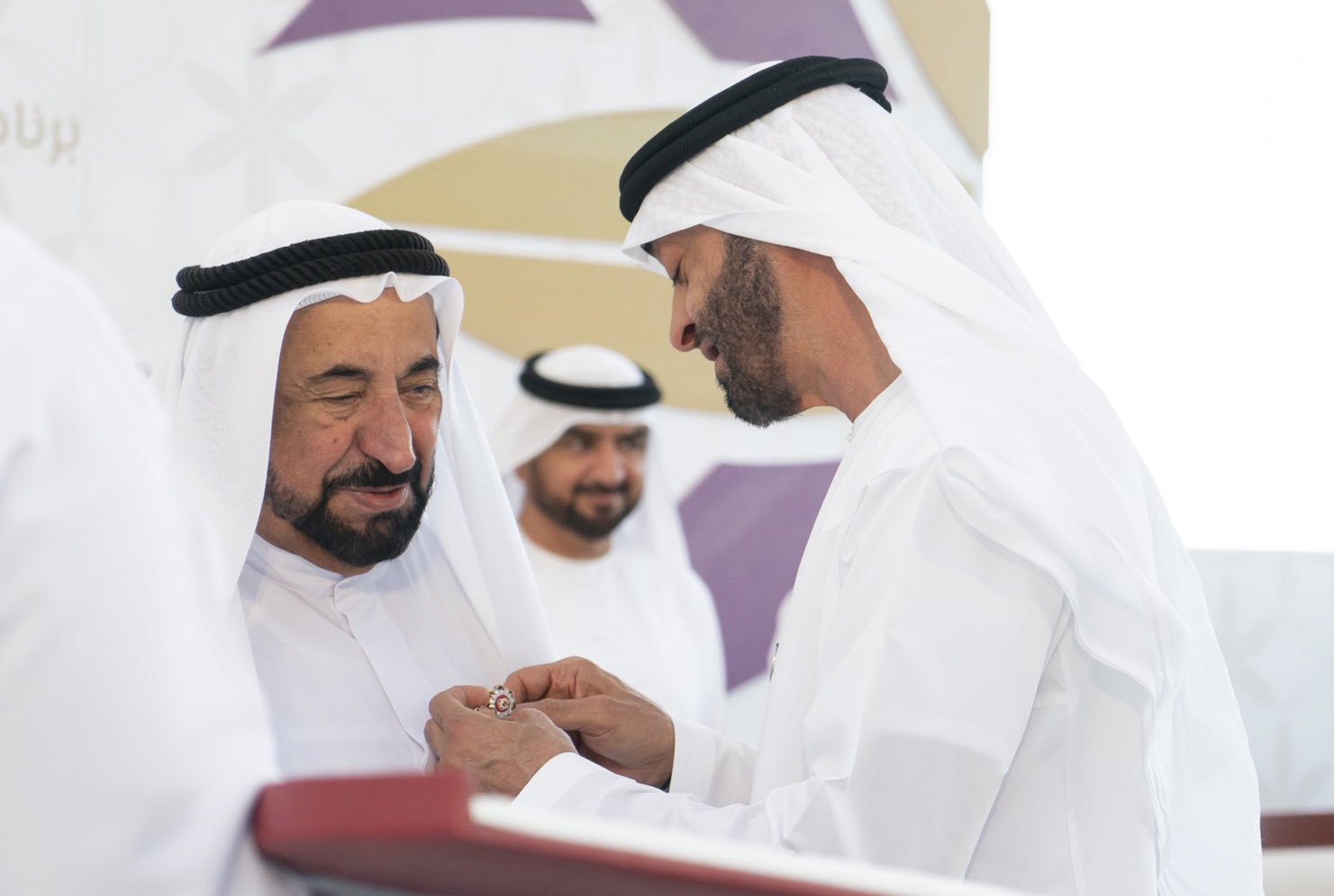 محمد بن زايد يقلد القاسمي وسام أم الإمارات