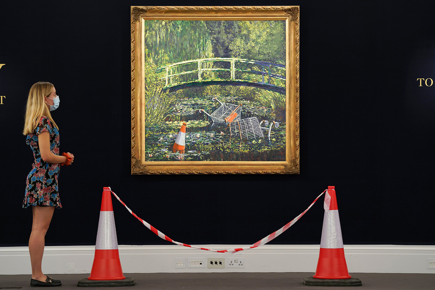 القاهرة : الأمير كمال فرج. بيعت لوحة فنان الشارع البريطاني الغامض بانكسي والتي حاكى فيها لوحة " زنابق الماء " الشهيرة للفنان الانطباعي الفرنسي كلود مونيه مقابل 9.8 مليون دولار في سوذبيز Sotheby’s يوم الأربعاء ، وهي ثاني أغلى لوحة لبانكسي يراها العالم الفني في المزاد.ذكر تقرير نشرته مجلة Forbes أن " بانكسي رسم عام 2005 لوحة أرني مونيه Show Me The Monet ،