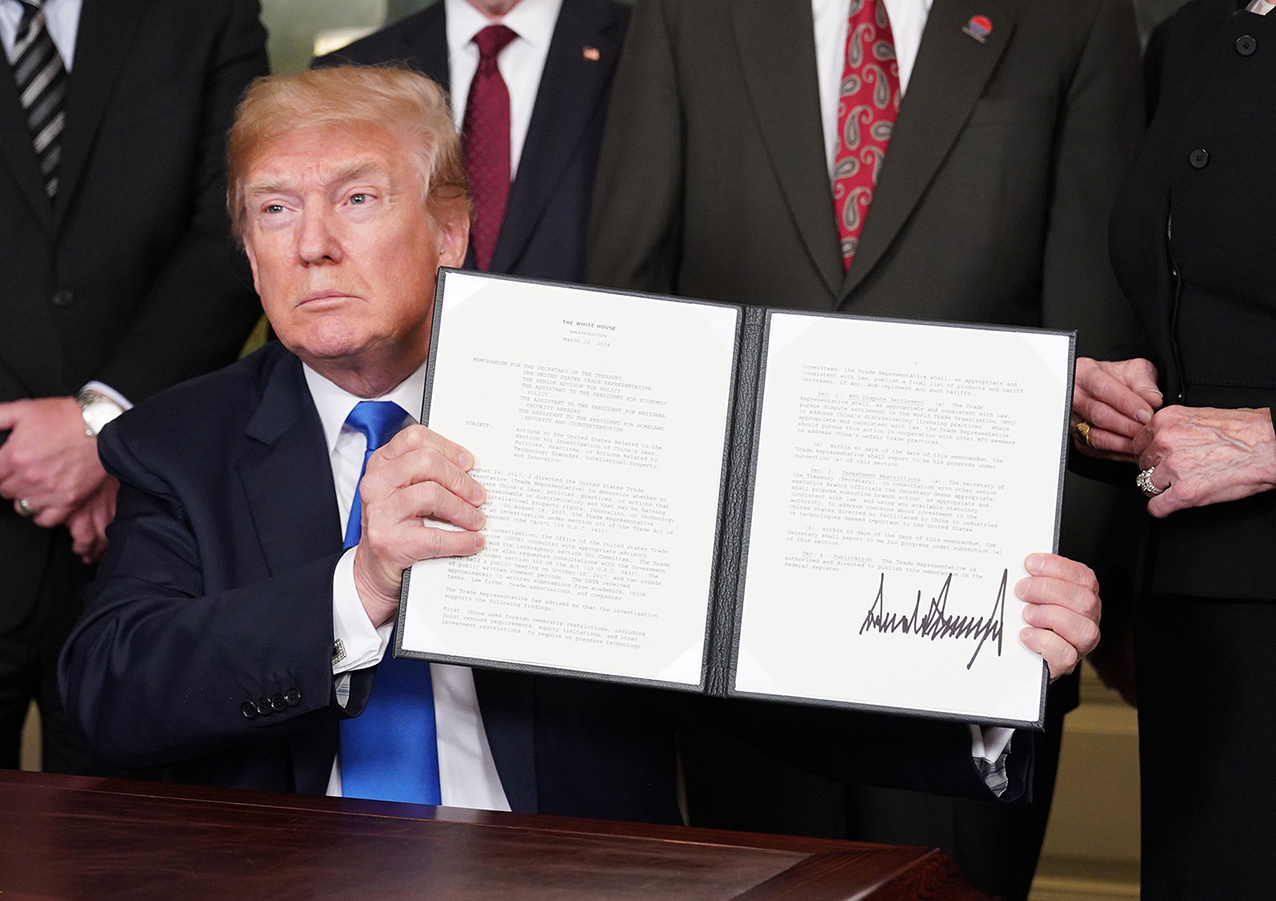 القاهرة : اقتصاد . وقع الرئيس الأمريكي دونالد ترامب أمس وثيقة تمهد الطريق لفرض جمارك جديدة على الواردات الصينية بقيمة تقدر بنحو 60 مليار دولار، ويمكن أن يؤدي هذا الإجراء بسرعة إلى حرب تجارية مع بكين. وقع الرئيس الامريكى القرار تحت دعاوي سرقة الصين المزعومة طوال سنوات للملكية الفكرية الامريكية، وفرض قيود جديدة على الاستثمار الصينى فى الولايات المتحدة .وكانت الصين قد
