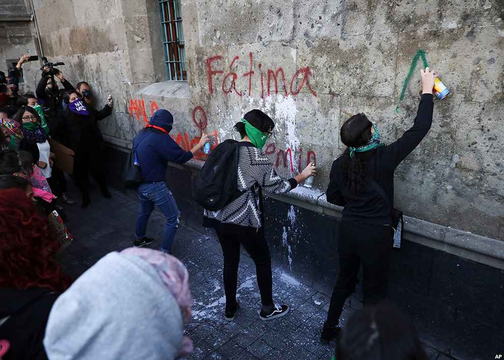 القاهرة : الأمير كمال فرج.طوقت شرطة مكافحة الشغب المكسيكية القصر الوطني خلال مظاهرة مناهضة للعنف ضد المرأة ، في مكسيكو سيتي ، أمس . وذلك بعد اندلاع احتجاجات نسائية على مقتل فتاة تبلغ من العمر سبع سنوات في العاصمة المكسيكية، وهي قضية أثارت الغضب في بلد ينتشر فيه العنف.وذكر تقرير نشرته وكالة Voice of America أن " الفتاة فاطمة سيسيليا الدريغيت