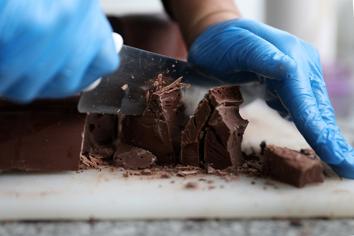 امرأة عملها تذوق الشوكولاته