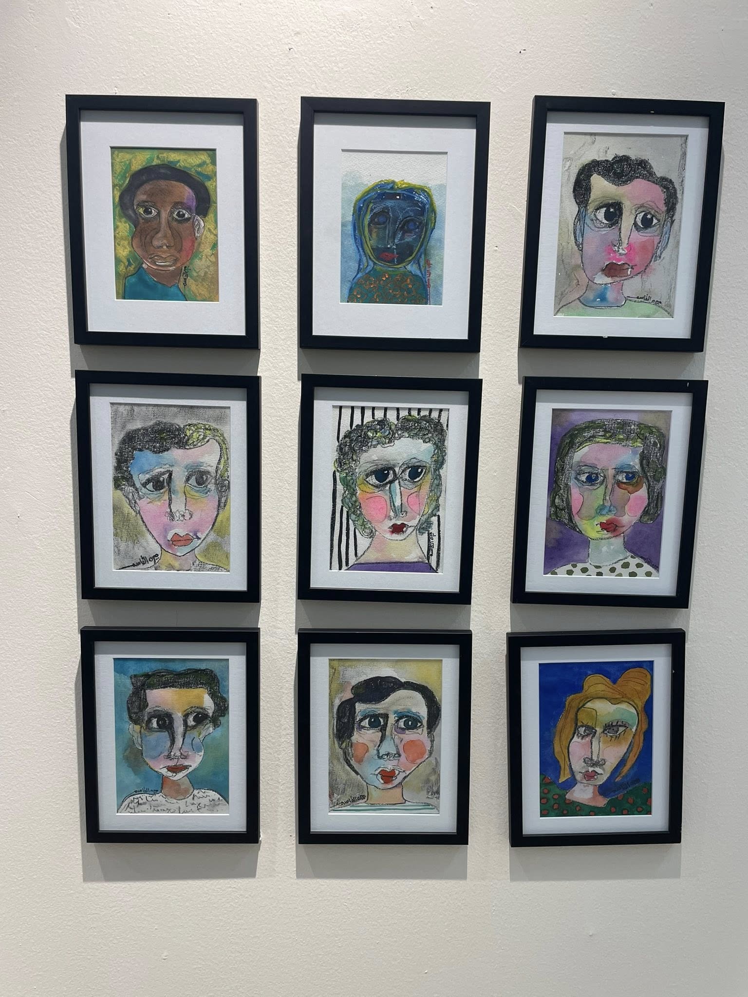 وإلى جانب الوجوه، تعرض اللوحات أزهارًا ملونة في أصصها، مما يضيف بهجة واحتفالًا بالألوان. هذا الاحتفال بالألوان يضفي نوعًا من الفرح على الوجوه، رغم مظهرها الذي قد يبدو مشوهًا، وهو تشوه يعكس طبيعة الذاكرة وليس تشوهًا فعليًا في الملامح.