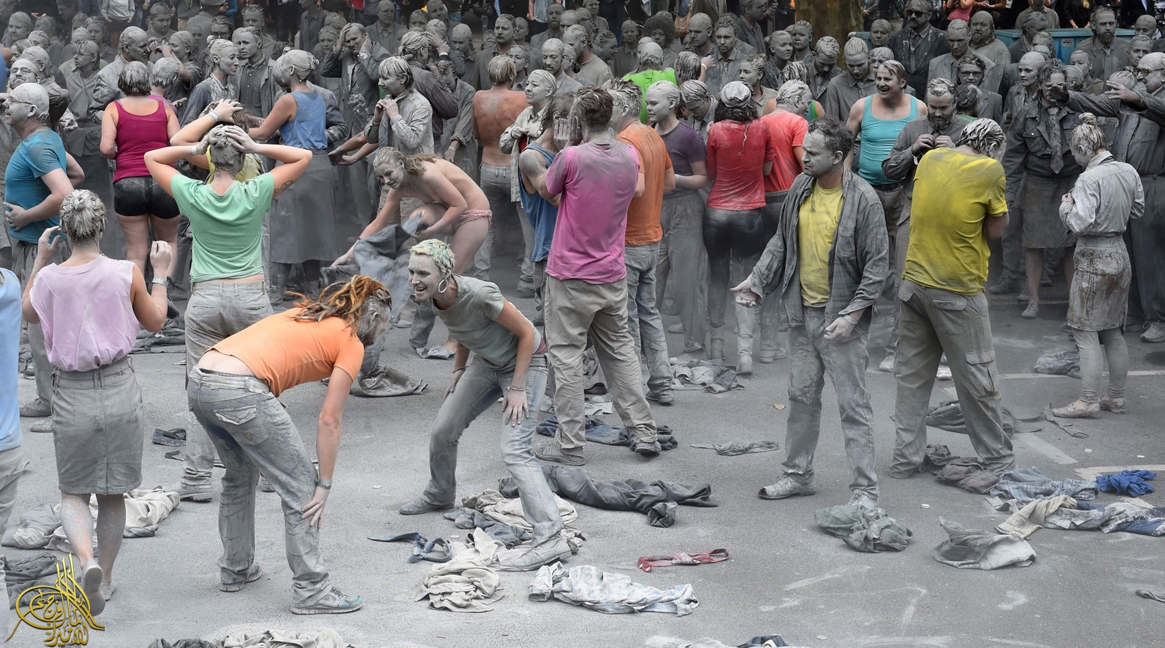 المتظاهرون طلوا وجوههم وأجسادهم بالطين ، وتجمعوا في تشكيلات مختلفة في أحد شوارع هامبورغ، شمال ألمانيا، حيث قادة أكبر الاقتصادات في العالم سوف يجتمعون لحضور قمة مجموعة العشرين.