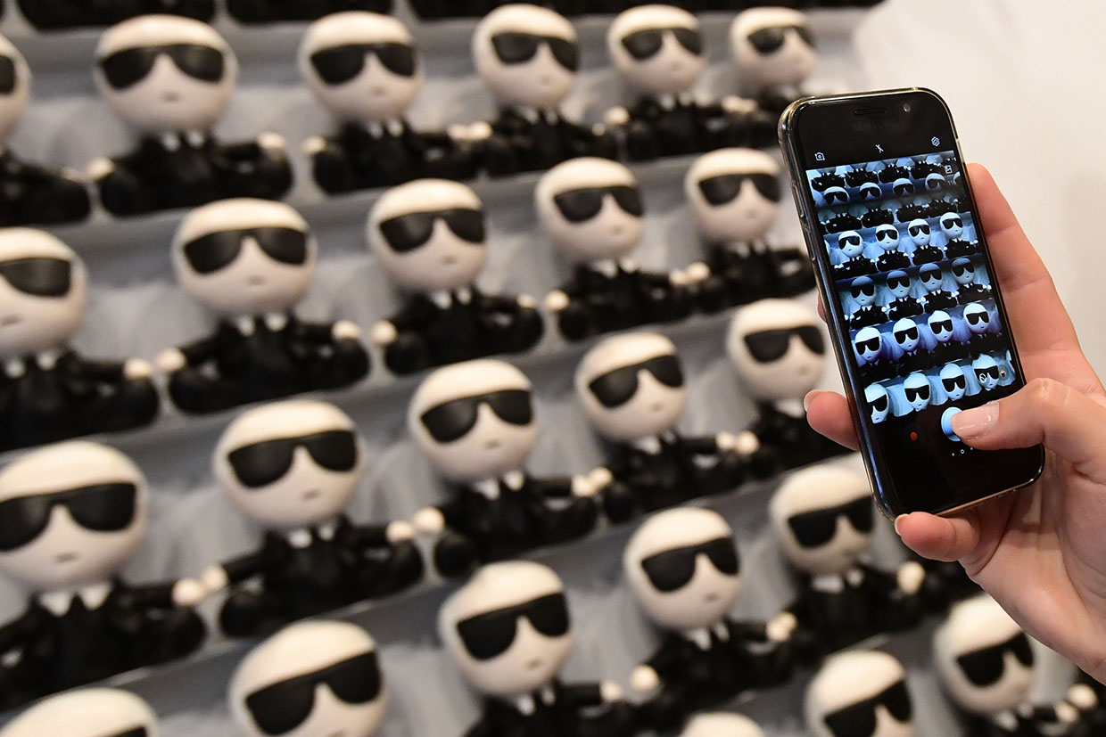 رسم فنان الشارع إندليس Endless الذي يتخذ من لندن مقراً له ، رسماً لتكريم مصمم الأزياء الألماني الراحل كارل لاغرفيلد مدير الإبداعي لدار شانيل للأزياء، خلال معرض بيتي إيماجين أومو للأزياء في 12 يونيو 2019 في فورتيزا دا باسو في مدينة فلورنسا الإيطالية.
