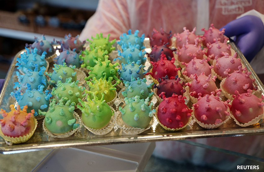 ذكر تقرير نشره موقع Voice of America أن " مع استمرار انتشار COVID-19 قدم الخباز تورستن روث حلويات على شكل "فيروس تاجي" في مخبزه في إرفورت بألمانيا، وتتضمن أشكال الحلوى أحيانا شكل الفيروس كما أظهرته الصور المخبرية، وفي بعض الأحيان أدخل الخباز الماهر على منتجاته بعض مظاهر مكافحة الفيروس، مثل لفات ورق المرحاض وأقنعة الوجه.