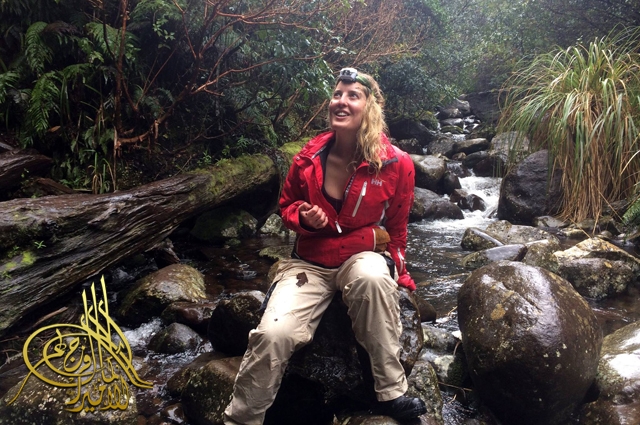 "أسلوب حياتي المغامر أيضا لا يتناسب مع الطعام النباتي، ففي عطلة نهاية الأسبوع كثيرا ما نسافر إلى شاطئ مهجور، وننام على أرجوحة ونأكل من مطبخ الطبيعة الأسماك وبعض أنواع الحيوانات المحلية، خاصة وأن خطيبي كورت علمني استخدام الرمح في صيد الأسماك، لم أكن أعتقد أنني سأكون قادرة على النظر الي عيني حيوان ثم أقتله بعد ذلك، ولكني بدأت بتناول الأسماك أولا ، إذ لم أتمكن من الضغط على الزناد، وبعد ذلك تجرأت بالصيد المباشر".