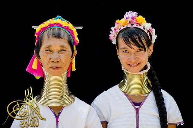 ترتدي المرأة بكايان بولاية كايه شرق بورما لفائف نحاسية حول رقبتها لاعطاء مظهر كما لو كانت رقابهن مشدودة . حيث يعتبر العنق الطويل من علامات الجمال في الثقافة الكايانية .