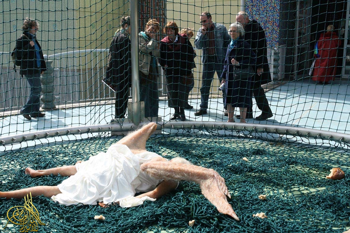 ولكن الحقيقة كشفت عنها صحيفة Daily Mail ، وهي أن الكائن عبارة عن عمل فني يجسد عجوزا برداء أبيض وجناحين، ملقاة على الأرض ، وتم صنع الدمية من "هلام السيليكا" وهي ألياف زجاجية وفولاذ مقاوم للصدأ.